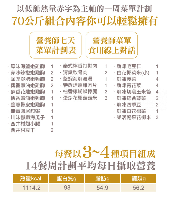 商品重量:超嫩蒜味辣椒舒肥雞胸170公克±10%、傳香麻油舒肥嫩雞胸170公克±10%、四川輕麻辣舒肥嫩雞胸170公克±10%、超嫩油蔥舒肥嫩雞胸180公克±10%、超嫩咖哩舒肥嫩雞胸170公克±10%、清燉軟骨肉300公克(固型物重量140公克)、川味椒香雞腿塊300±5% /包、招牌香菇湯500g±10%(固形物:175g)、鮮凍四季豆200±10%、綜合蔬菜200±10%、菠菜200±10%、青花菜200±10%、白花椰菜200±10%、玉米筍200g±10%、鮮凍白花椰菜米250公克±10%(含盒重)、綠寶毛豆莢200±10%、200公克±4.5%、樂活輕采花椰米200公克±4.5%、三杯杏鮑菇200g±10%/包、秘製老滷藥膳雞胗180g±5%、日式蒲燒鯛魚腹排150公克±3%/包、泰式檸香打拋肉200公克±4.5%、蛋炒花椰菇菇米200g±4.5%、西井村豆干115公克、私房麻油粉肝200g±5%、川味椒麻海瓜子150公克、台灣無毒鳳尾甜蝦100g±10%(20±3隻/盒)、螯蝦海鮮濃湯200公克±4.5% (固型物28g±4.5%)、日式鹽蔥帶皮舒肥嫩雞胸180公克±10%、柚香檸檬蝴蝶棒腿200g、煙熏雞肉片170g±10%、萬巒煙燻豬耳絲120g
