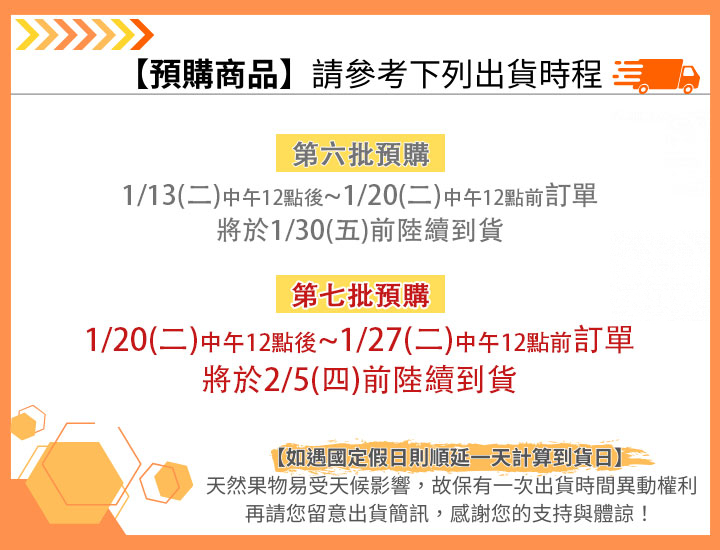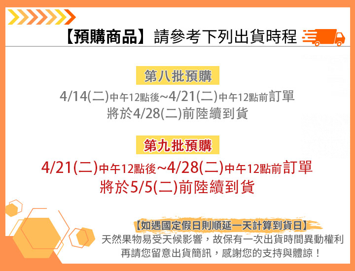 3. 訂單款項須於販售時間內完成付款,若未完成付款之訂單,將安排於下次出貨,造成不便敬請原諒。