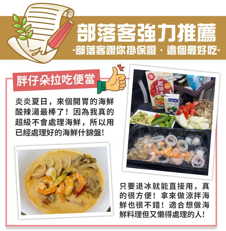 商品產地:魷魚(中國)、海瓜子肉(中國)、干貝(中國)、白蝦(台灣)
