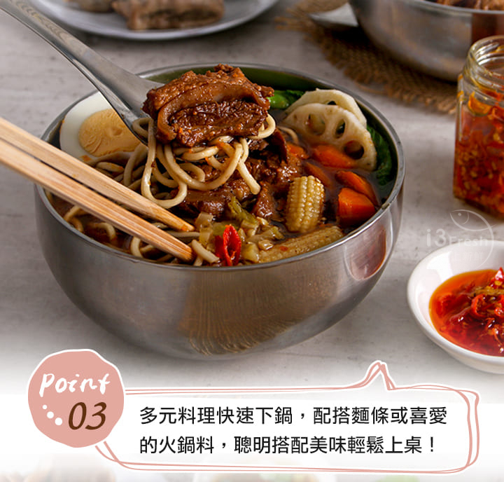 食用方式:退冰解凍後,去除包裝袋並倒入容器中,依個人喜好斟酌加水及調味料煮沸3分鐘即可食用。