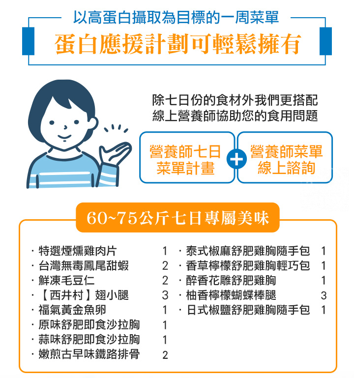 商品重量:特選煙燻雞肉片170g±10%、台灣無毒鳳尾甜蝦100g±10%(20±3隻/盒)、鮮凍綠寶毛豆莢(無鹽)200g±5%、秘製老滷藥膳雞胗180g±5%、福氣黃金魚卵180g±10%、去骨調味台式雞腿排190g±10%、原味舒肥即食沙拉胸100g±4.5g、嫩煎古早味鐵路排骨100g±10%、萬巒煙燻豬耳絲120g、舒肥智利鮭魚菲力-泰式酸辣100g±10%、帕瑪森舒肥雞胸輕巧包110g±10%、海鹽舒肥即食沙拉胸100g±10%、蒙古藥膳舒肥雞胸輕巧包110g±10%、香草檸檬風味舒肥雞胸輕巧包100g±10%、四川輕麻辣舒肥嫩雞胸170g±10%、蒜味舒肥即食沙拉胸100g±4.5g