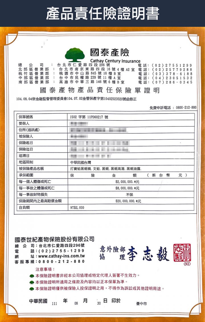 | 極品大和黑蜆精5包/盒 營養標示 |
