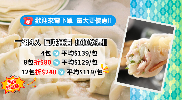 商品成分:豬前腿肉(台灣)、韭菜、青蔥、高湯(水、洋蔥、紅蘿蔔、芹菜、雞骨、豬皮(台灣)、昆布、柴魚片)、餃皮(麵粉、水、食鹽、磷酸二澱粉)、薑末、醬油(水、非基因改造黃豆(高蛋白豆片)、小麥、食鹽、酒精)、香油(大豆沙拉油、芝麻油)、米酒、雞粉(鹽,麥芽糊精,L-麩酸鈉,糖,玉米澱粉,雞肉粉,香料,酵母萃取物(酵母萃取物,鹽),雞油,棕櫚油(棕櫚油,硬質棕櫚油),調味劑(5'-次黃嘌呤核苷磷酸二鈉,5'-鳥嘌呤核苷磷酸二鈉),白胡椒)、海鹽、糖、白胡椒