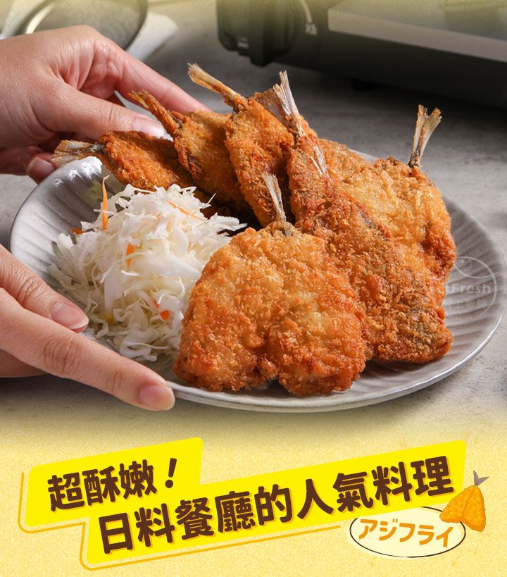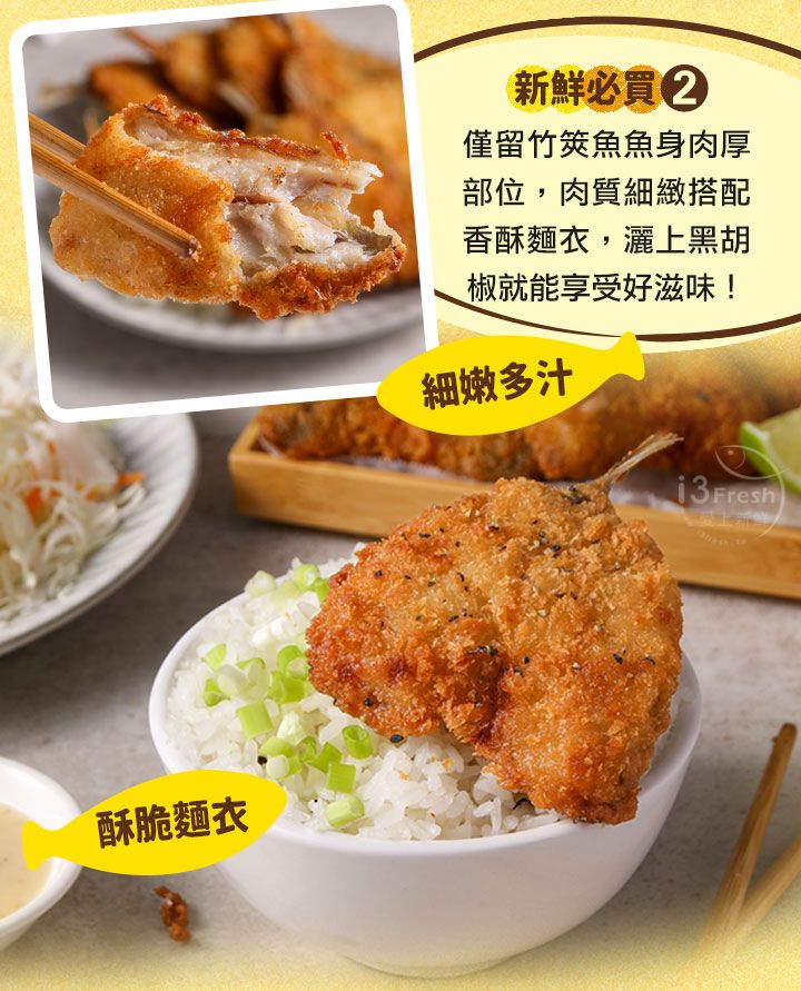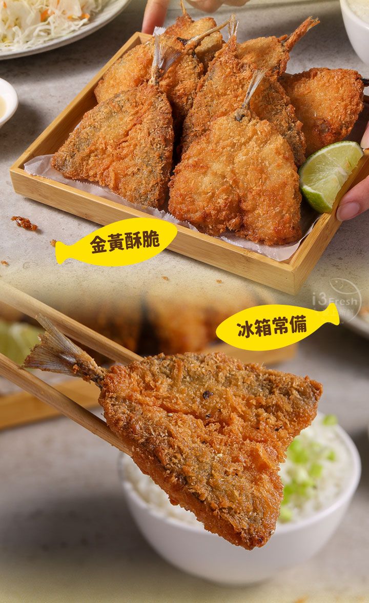 商品成分:竹筴魚、麵包粉(高筋麵粉、葡萄糖、棕櫚油、食鹽、水)、小麥麵粉、食鹽