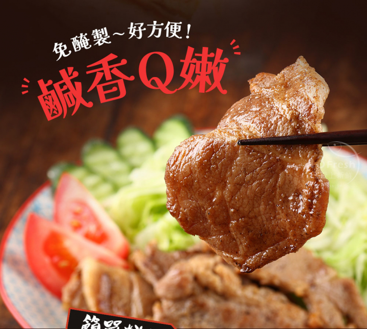 商品成分:豬肉、水、糖、鹽、醬油、味醂 [果糖、水、糯米、米麴、釀造糯米醋、 鹽、調味劑(胺基乙酸、DL-胺基丙酸、 檸檬酸)]、酵母、麥芽糊精、鹿角菜膠、 纖維素、葡甘露聚醣、碳酸氫鈉、碳酸鉀、檸檬酸鈉、麩醯胺轉胺酶、白胡椒粉、蒜頭、米酒、多磷酸鈉、L-麩酸鈉