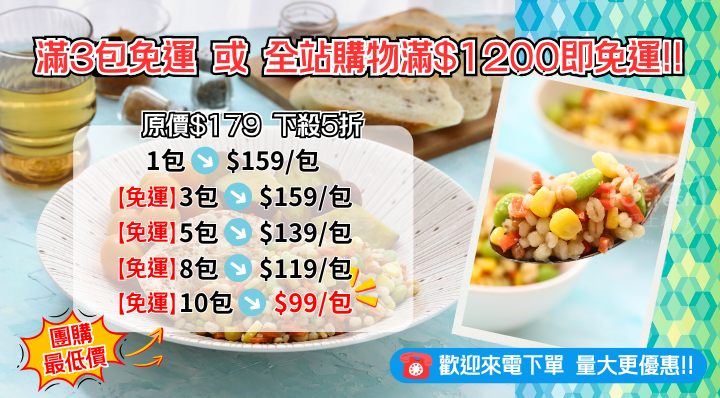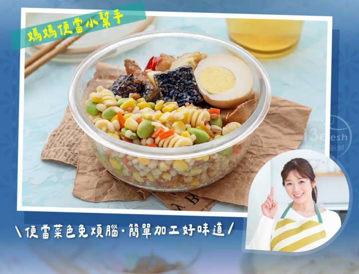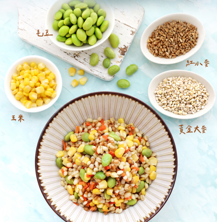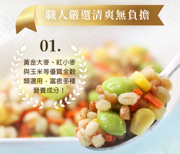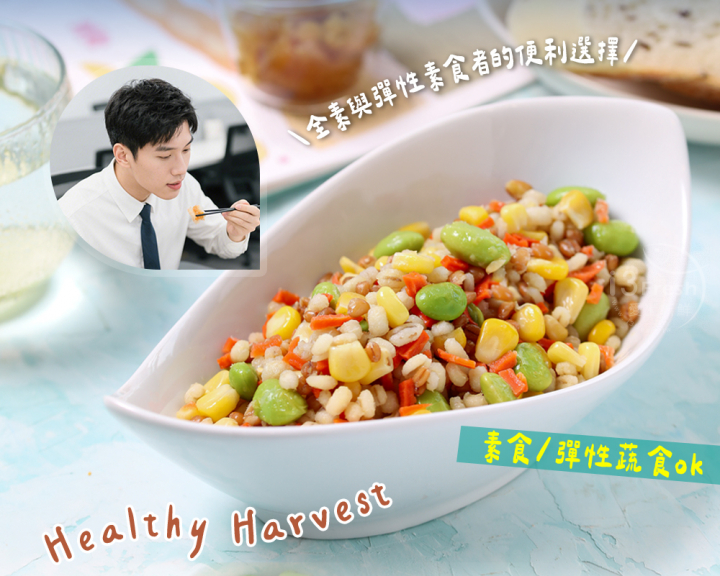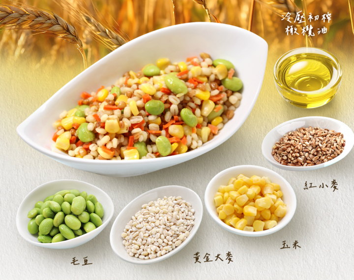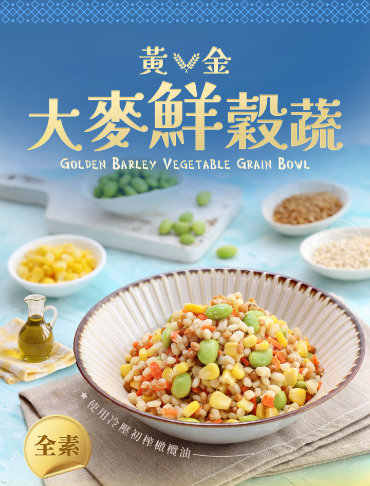 成分 : 大麥、甜玉米粒(非基因改造)、紅小麥、毛豆(非基因改造)、紅蘿蔔、水、初榨橄欖油、醬油、鹽、蔬菜調味粉(鹽、糖、麥芽糊精、小麥水解蛋白、酵母抽出物、高麗菜抽出物、棕櫚油)、香菇調味料(香菇、鹽、香菇萃取物)、非基因改造玉米發酵粉(麥芽糊精、發酵玉米)