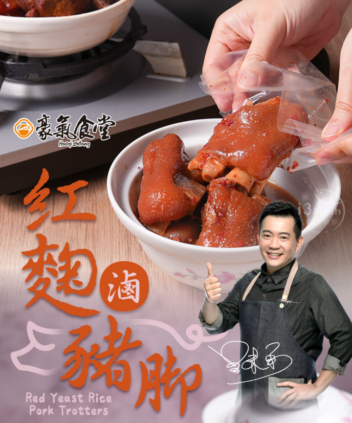 成分:豬腳(台灣)、水、醬油[水、非基因改造黃豆(高蛋白豆片)、小麥、食鹽、酒精]、冰糖、紹興酒(糯米、蓬萊米、小麥)、米酒(米、精緻食用酒精)、紅穀米(在來米、紅麴)、鹽