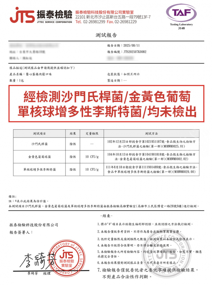 過敏源:本產品含有麩質之穀物、雞蛋、奶類、花生及其製品之過敏原,不適合對其過敏體質者食用。