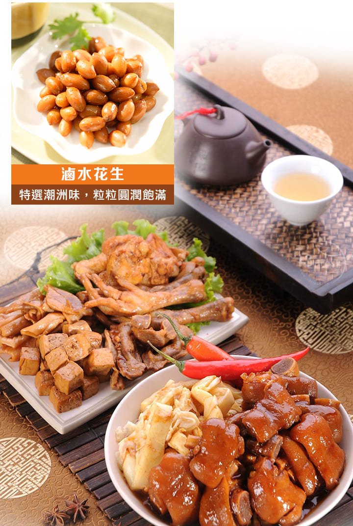 產品成份:花生、飲用水、滷汁【大豆沙拉油、鹽、黑糖、高鮮味精〔L-麩酸鈉、核苷酸(5'-次黃嘌呤核苷磷酸二鈉、5'-鳥嘌呤核苷磷酸二鈉)、羧甲基纖維素鈉〕、老抽(水、大豆、小麥澱粉、鹽、糖)、魚露(鯷魚、鹽、糖)、黑麻油、八角、花椒、冰糖】