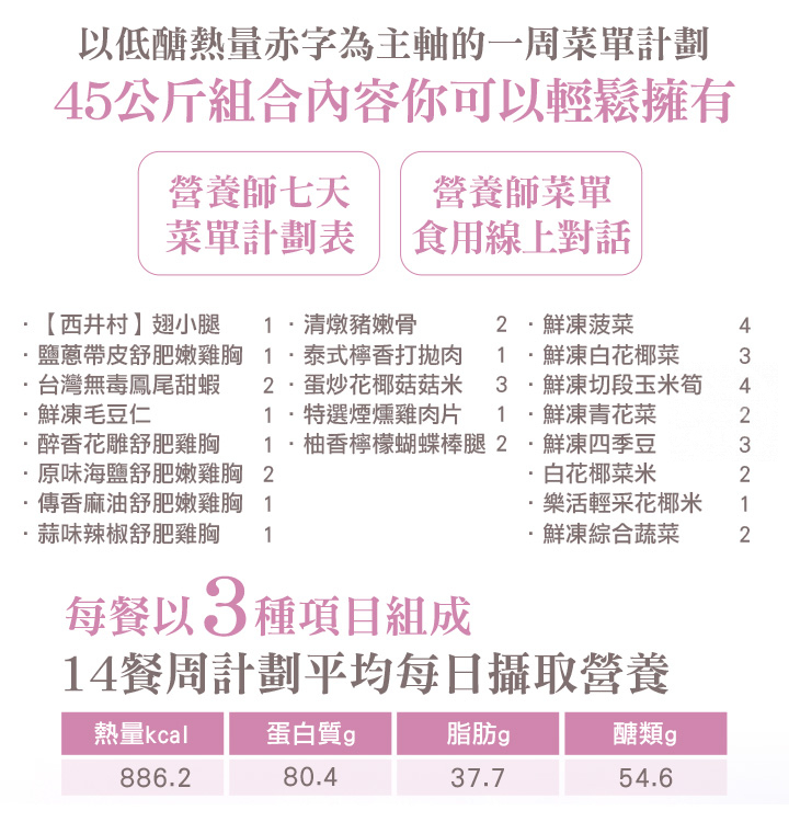 商品重量:超嫩蒜味辣椒舒肥雞胸170公克±10%、原味海鹽舒肥嫩雞胸170公克±10%、傳香麻油舒肥嫩雞胸170公克±10%、四川輕麻辣舒肥嫩雞胸170公克±10%、超嫩油蔥舒肥雞胸180公克±10%、清燉軟骨肉300公克(固型物重量140公克)、川味椒香雞腿塊300±5% /包、招牌香菇湯500g±10%(固形物:175g)、鮮凍四季豆200±10%、綜合蔬菜200±10%、菠菜200±10%、青花菜200±10%、白花椰菜200±10%、綠寶毛豆莢200±10%、玉米筍200g±10%、鮮凍白花椰菜米250公克±10%(含盒重)、200公克±4.5%、三杯杏鮑菇200g±10%/包、秘製老滷藥膳雞胗180g±5%、日式蒲燒鯛魚腹排150公克±3%/包、泰式檸香打拋肉200公克±4.5%、美味裙帶絲150公克±4.5%、台灣無毒鳳尾甜蝦100g±10%(20±3隻/盒)、日式鹽蔥帶皮舒肥嫩雞胸180公克±10%、柚香檸檬蝴蝶棒腿200g、煙熏雞肉片170g±10%、萬巒煙燻豬耳絲120g