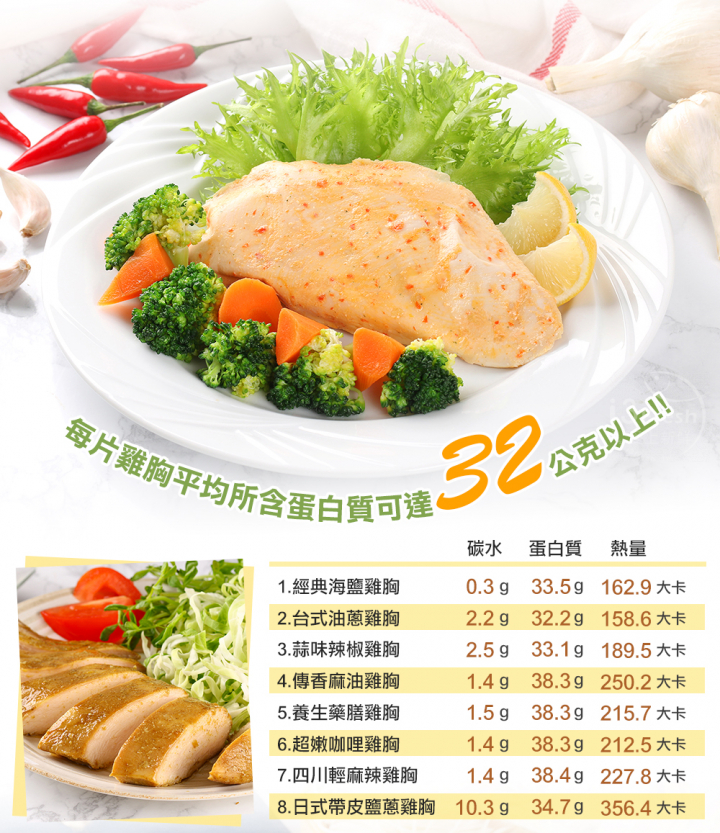 【台式麻辣】雞胸肉、辣豆瓣醬(紅辣椒、水、非基因改造黃豆、食鹽、甘蔗液糖(糖、水)、蠶豆、香油(大豆油、芝麻)、麵粉、調味劑(5’-次黃嘌呤核苷磷酸二鈉、5’-鳥嘌呤核苷磷酸二鈉)、防腐劑(已二烯酸鉀1g/kg以下)、玉米糖膠、八角粉)、雞油、老薑、醬油、紅蔥頭、蒜頭、辣椒粉、青花椒、花椒、白胡椒、八角、鹽、月桂葉