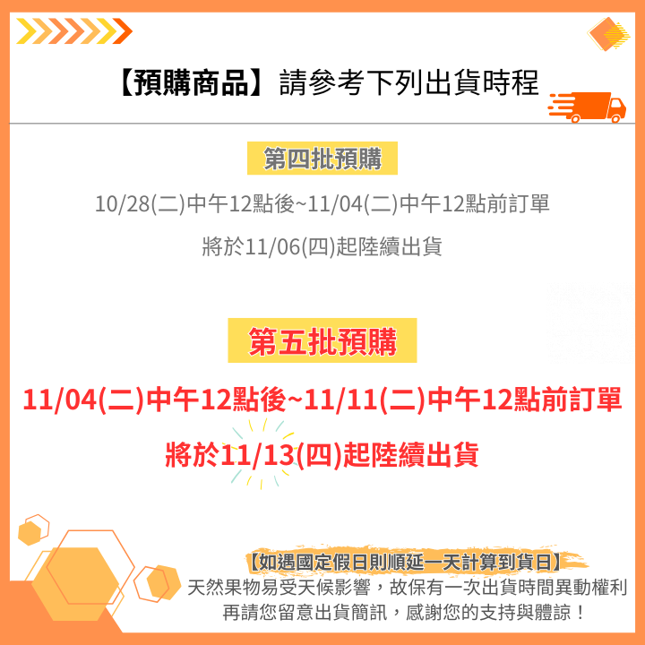 3. 訂單款項須於販售時間內完成付款,若未完成付款之訂單,將安排於下次出貨,造成不便敬請原諒。