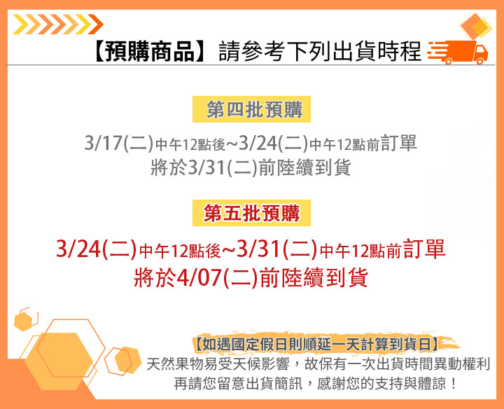 3. 訂單款項須於販售時間內完成付款,若未完成付款之訂單,將安排於下次出貨,造成不便敬請原諒。