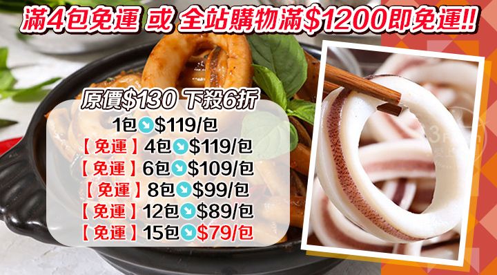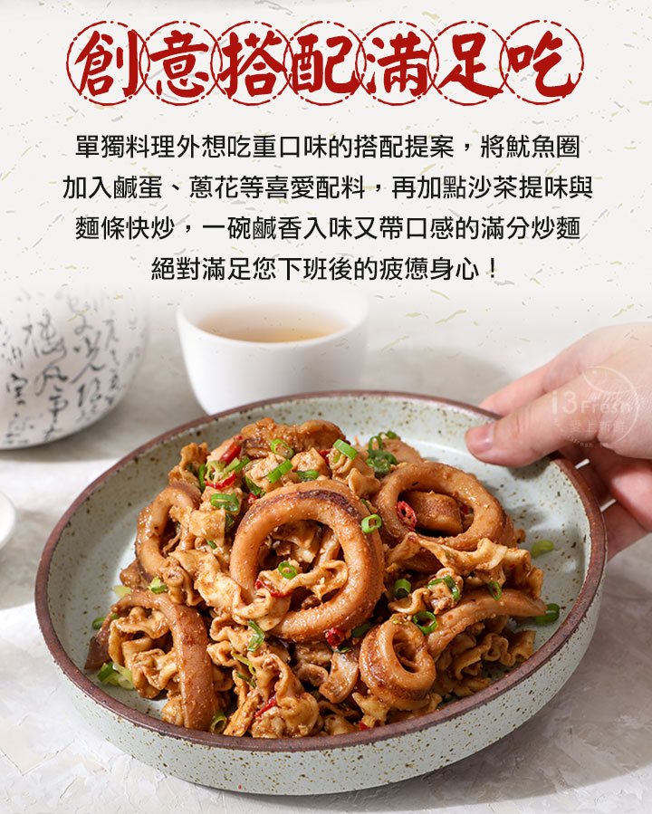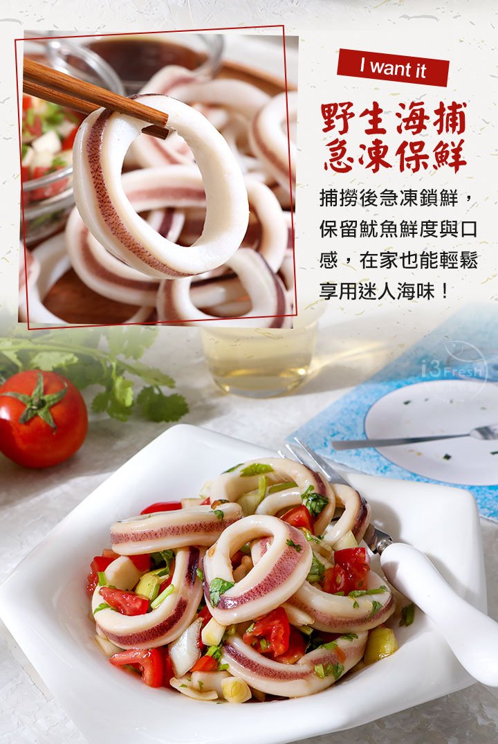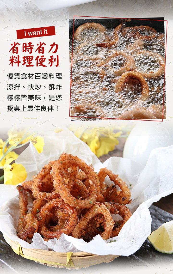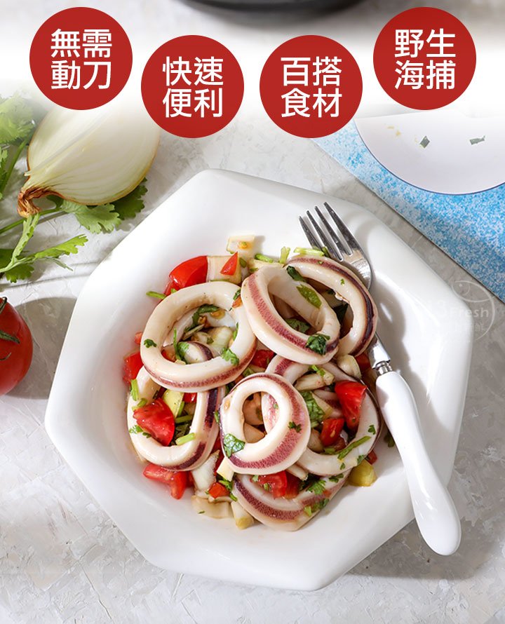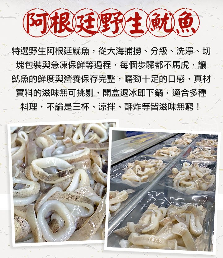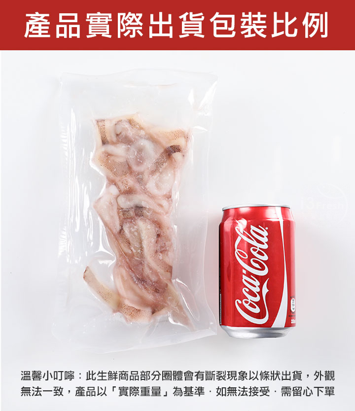 1. 本產品型態為整尾魷魚分切,因此產品部份型態會有非完整圈的比例。