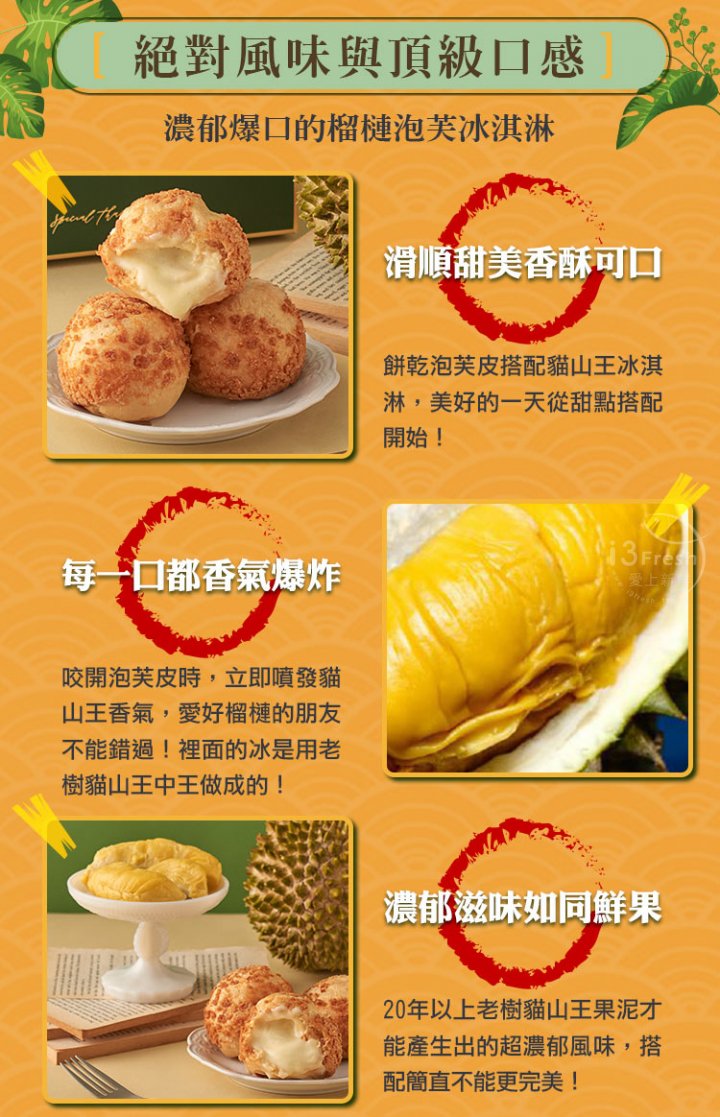 產品品名:【貓山王榴槤冰淇淋泡芙】