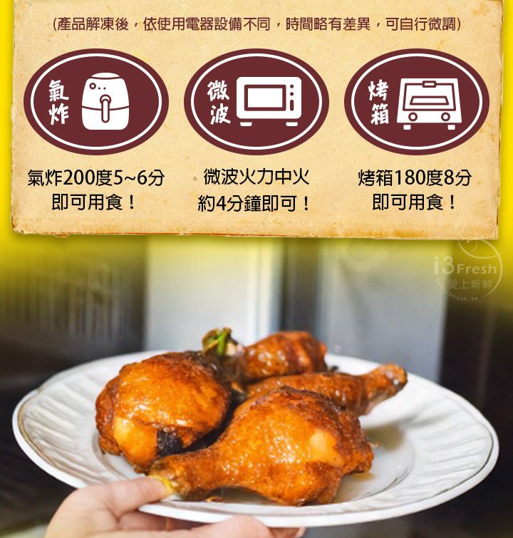 1.烤箱: 180度約8分鐘 2.氣炸鍋: 200度約5分鐘 3.氣炸鍋: 200度約5分鐘