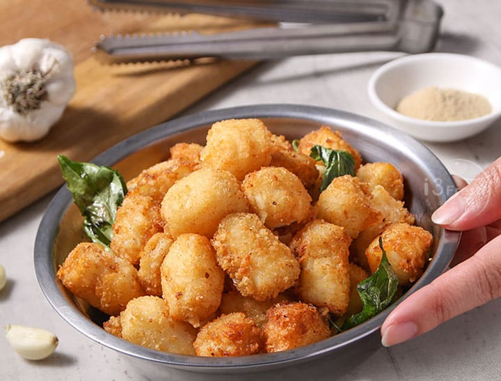 油炸法: 1.無須解凍,直接放入155℃-160℃之油鍋中。 2.油炸約3分鐘。 3.炸至金黃色浮起後,即可取出食用