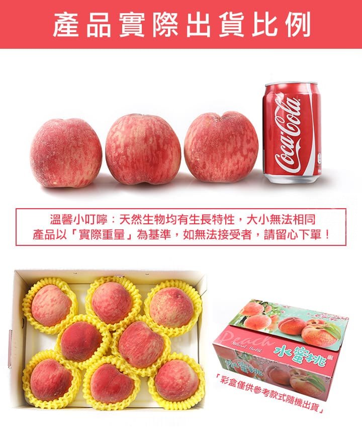 天然果物均有生長特性,大小、外觀無法相同,出貨產品以「實際重量1kg±1.5%」為基準