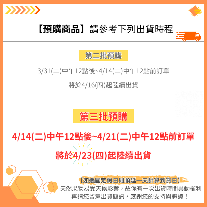保存方式:建議收到時務必開箱通風並放常溫,待變軟後再食用會更加香甜多汁,若未即時食用,請務必置於冰箱,建議一周內食用完畢,為最佳賞味期