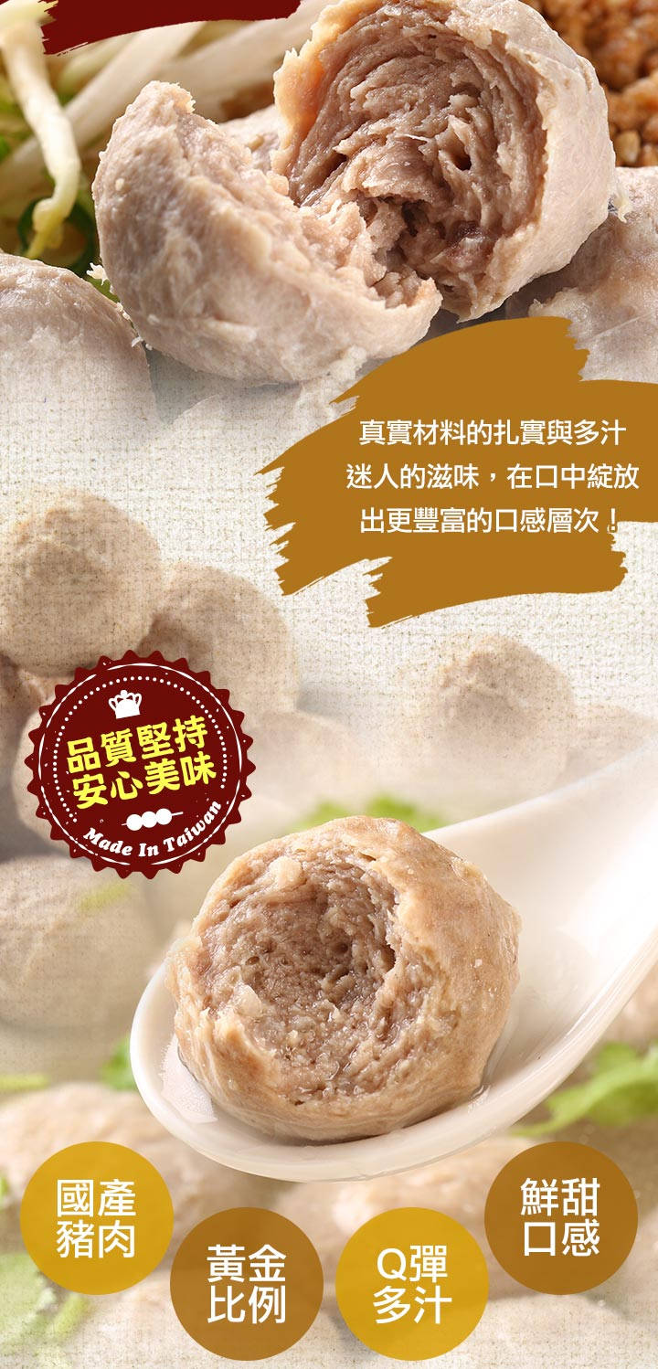 商品成分:豬肉(台灣) 、豬脂(台灣)、雞肉、水、砂糖、粘稠劑(磷酸二澱粉)、食鹽、調味劑(L-麩酸鈉、胺基乙酸、DL-胺基丙酸、5’-次黃嘌呤核苷磷酸二鈉、5’-鳥嘌呤核苷磷酸二鈉)、品質改良劑(焦磷酸鈉(無水)、多磷酸鈉、偏磷酸鈉、偏磷酸鉀、磷酸二氫鈉(無水))、香料(棕櫚油、大豆水解蛋白、中鏈三酸甘油酯、大豆油、香料、天然香料、維生素C、維生素B1、抗氧化劑(維生素E、丁基羥基甲氧苯)、乙基麥芽醇)、白胡椒粉、葡萄糖、 抗氧化劑(異抗壞血酸鈉)