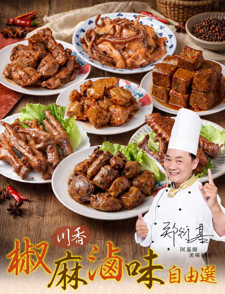 成分:雞胗、水、醬油、米酒、砂糖、大豆沙拉油、蒜、薑、蔥、白糖、冰糖、豬油(台灣)、洋蔥、香菇素蠔油(黑豆、蔗糖、海鹽、糯米、昆布、香菇)、鹽、鮮美露(釀造醬油(使用非基因改造大豆)、風味調味液(食鹽、酒精、昆布、柴魚(鰹魚)、干貝)、轉化液糖(蔗糖、水)、水、食鹽、釀造醋(米醋)、酒精、酵母抽出物)、花雕酒(糯米、水、小麥) 、黑胡椒粉、白胡椒粉、洋蔥粉、蒜粉、孜然粉、乾辣椒、花椒、青花椒、五香粉(八角、肉桂、茴香子、花椒、丁香)、肉桂粉、中藥包(八角、小茴香、多香果、肉桂、高良薑、白芷、草果、蓽茇、花椒、山奈、丁香)