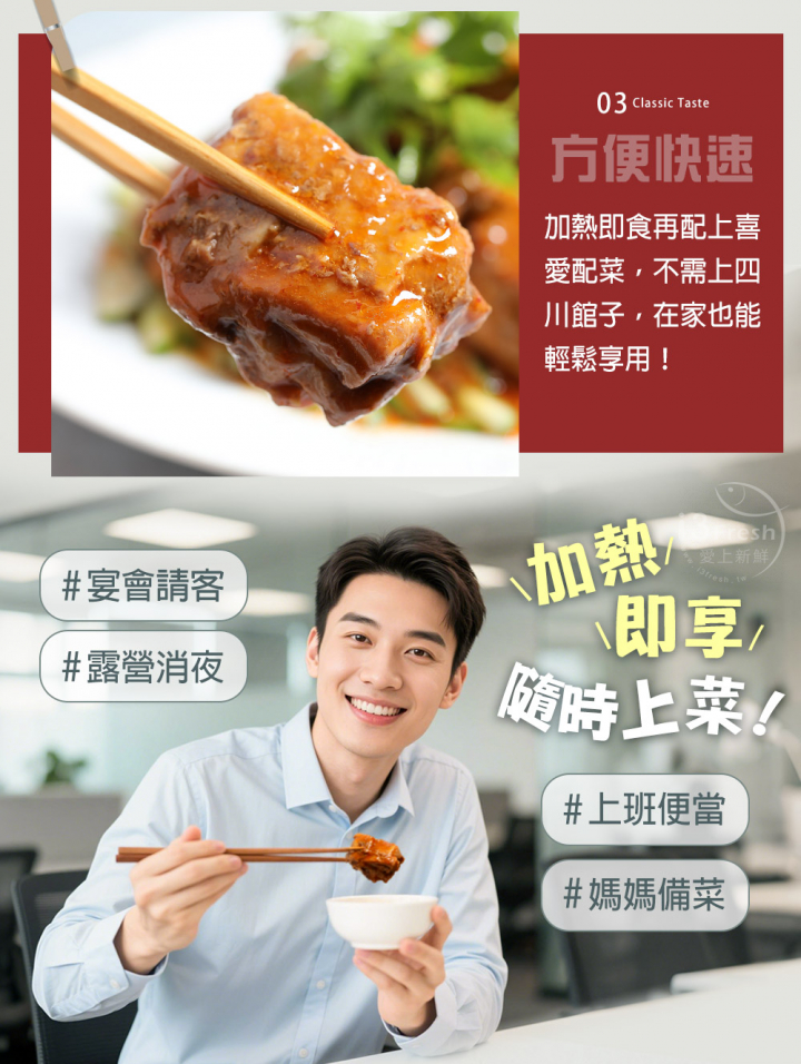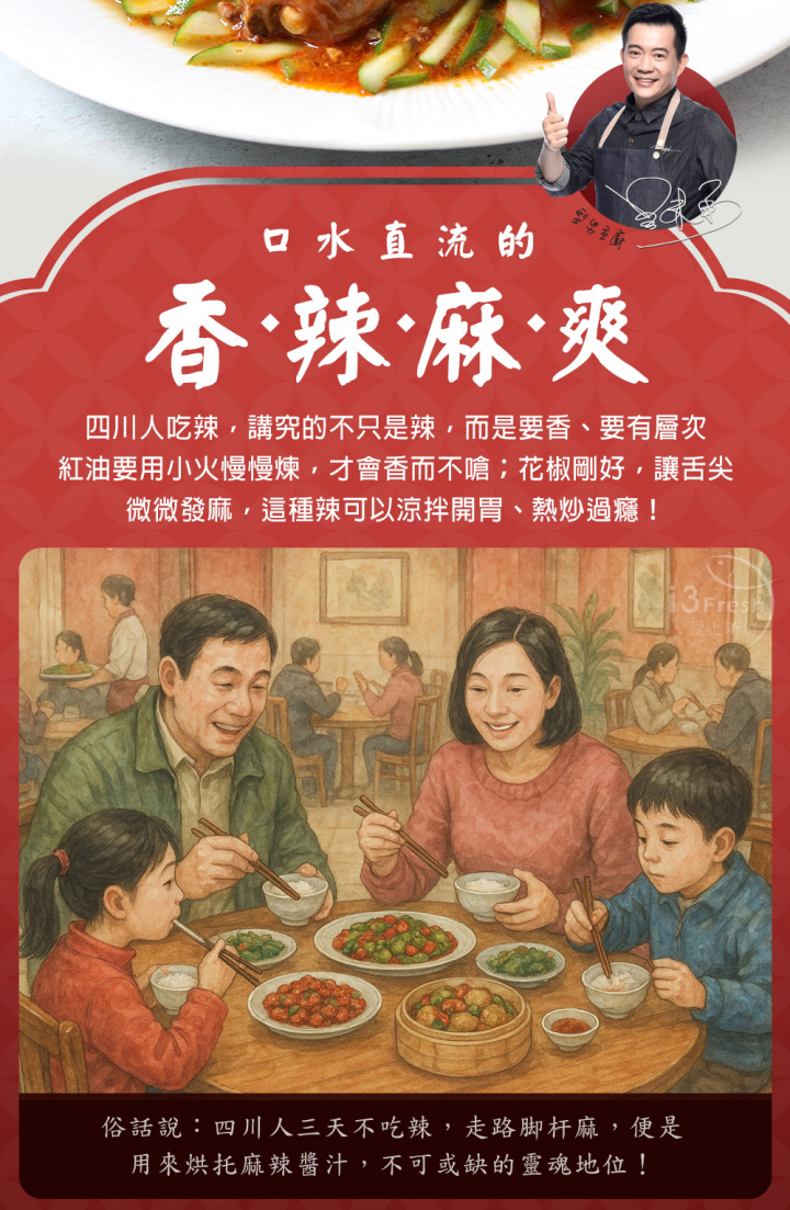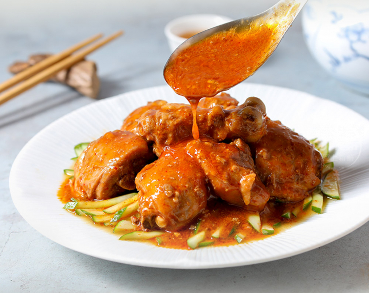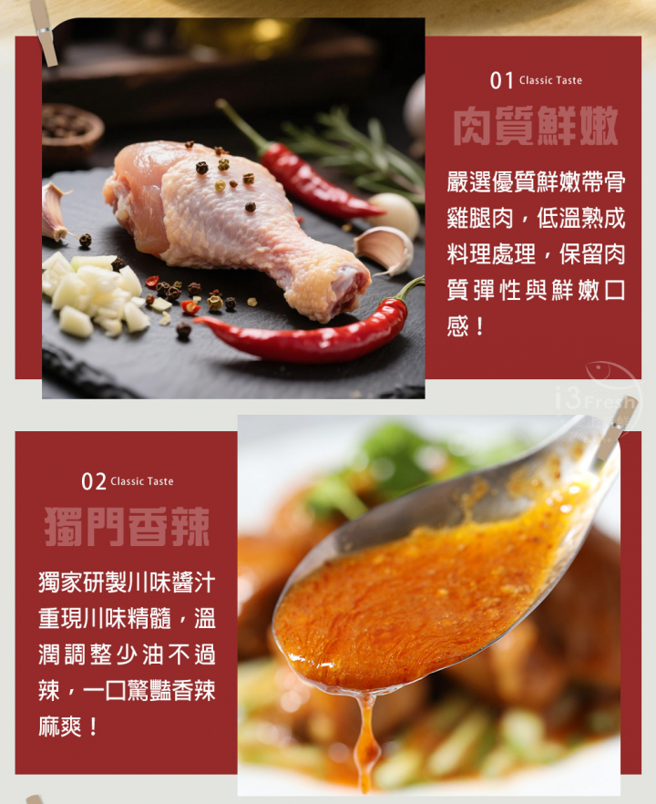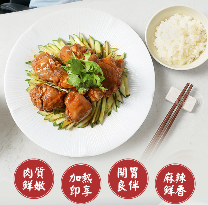 產品成分:雞腿塊(美國)、水、醬油膏{水、大豆胺基酸液、鹽、糖、米、純釀造醬油、麥芽糊精、甘草末,添加物:黏稠劑(乙醯化己二酸二澱粉、玉米糖膠)、調味劑(葡萄糖酸內酯、L-麩酸鈉、胺基乙酸、5'-次黃嘌呤核苷磷酸二鈉、5'-鳥嘌呤核苷磷酸二鈉)、著色劑(焦糖色素)、甜味劑(醋磺內酯鉀、蔗糖素)、複方防腐劑[防腐劑(苯甲酸)、二氧化矽]}、糖、大蒜、薑、紅砂糖、辣椒油[大豆油、朝天椒、糖、麻油(麻油、大豆油)、鹽]、辣椒油{大豆油、辣椒、洋蔥、豆豉[大豆(非基因改造)、水]、L-麩酸鈉、食鹽、白砂糖、花椒}、米醋(水、糯米)、香油(大豆油、芝麻油)、食鹽、花椒。