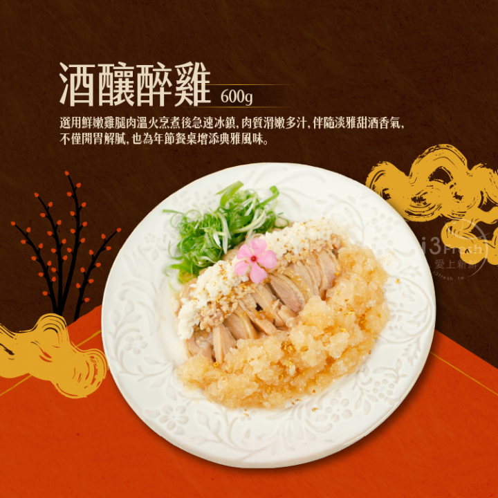 產品成分:醉雞腿(去骨雞腿、水、紹興酒、枸杞、米酒、鹽、紅棗、黃耆、當歸)、醬汁{水、酒釀(糯米、水)、桂花釀(葡萄酒、果糖、異麥牙寡糖、桂花、香料)、醬油、檸檬汁、果糖[糖(果糖、葡萄糖)、水]、辣椒醬 (辣椒、小米椒、水、鹽、冰醋酸)、乳酸、水解蛋白(水解玉米蛋白、麥芽糊精、鹽、葵花籽油)、醋酸液(水、冰醋酸、鹽)、辣椒油(辣椒萃取物、聚山梨醇酐脂肪酸酯八十、脂肪酸甘油酯)、青花椒萃取物(青花椒、大豆油)、紅椒色素(聚山梨醇酐脂肪酸酯八十、紅椒色素)、蠔油[水、糖、鹽、L-麩酸鈉、乙醯化磷酸二澱粉、甜麵醬(麵粉、水、鹽、糖)、蠔萃取物(蠔、水、鹽)、香料、水解蛋白(水解玉米蛋白、麥芽糊精、鹽、葵花籽油)、焦糖色素、魚露(鯷魚、鹽)、調味劑(5'-次黃嘌呤核苷磷酸二鈉、 5'-鳥嘌呤核苷磷酸二鈉)、檸檬酸、蠔乾汁(水、蠔乾、鹽)、己二烯酸鉀(防腐劑)、玉米糖膠、關華豆膠、甜菊醣苷(甜味劑)]、花椒油(大豆沙拉油、花椒萃取液)}。