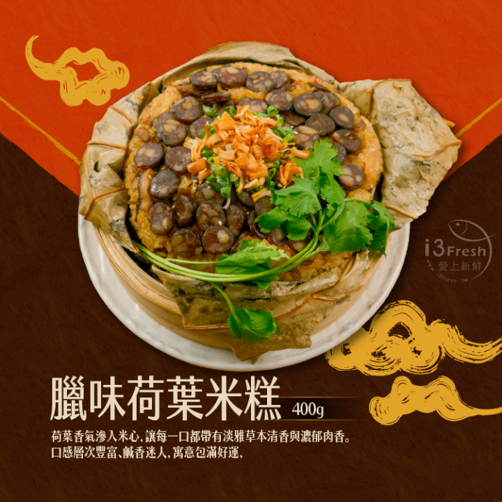 產品成分:糯米、水、豬油{精製豬脂(西班牙)、熬製豬脂(台灣)、抗氧化劑-維生素E(混和濃縮生育醇、芥花油)}、米酒(米、砂糖、純水)、肝腸{豬肉(台灣)、豬背脂(台灣)、鴨肝、糖、醬油(水、非基因改造黃豆(高蛋白豆片)、小麥、食鹽、酒精)、甘草水(水、甘草)、高粱酒(高粱、小麥)、米酒、食鹽、白胡椒粉(白胡椒、地瓜澱粉)、可食性牛膠原蛋白腸衣、調味劑( L-麩酸鈉)、焦糖色素、調味劑(乳酸鈉液)、結著劑(焦磷酸鈉、多磷酸鈉)、抗氧化劑(L-抗壞血酸鈉)、調味劑(DL-胺基丙酸)、複方品質改良劑[調味劑(胺基乙酸)、醋酸鈉(無水)、酵素製劑(溶菌酶)]、甜味劑(甘草素、甘草萃) 、複方保色劑[食鹽、保色劑(亞硝酸鈉、硝酸鉀)、麥芽糊精]}、醬油、魷魚、蝦米、蒜、紅蔥頭、香菇、冰糖、調味粉{鹽、麥芽糊精、L-麩酸鈉、糖、玉米澱粉、雞肉粉、香料、酵母萃取物(酵母萃取物、鹽)、雞油、棕櫚油(棕櫚油、硬質棕櫚油)、調味劑(5'-次黃嘌呤核苷磷酸二鈉、5'-鳥嘌呤核苷磷酸二鈉)、白胡椒}。