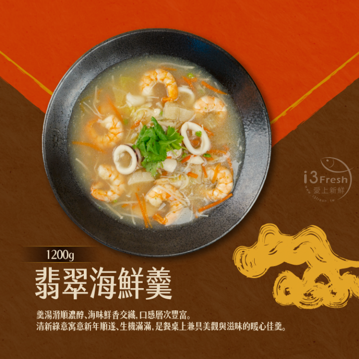 產品成分:高湯{水、鹽、雞肉萃取物(雞肉萃取物、鹽)、L-麩酸鈉、糖、雞油、酵母萃取物(酵母萃取物、鹽)、乙醯化己二酸二澱粉、香料、調味劑(5'-次黃嘌呤核苷磷酸二鈉、5'-鳥嘌呤核苷磷酸二鈉)、明膠(豬)、玉米糖膠、β-胡蘿蔔素[麥芽糊精、辛烯基丁二酸鈉澱粉、葵花籽油、抗氧化劑(L-抗壞血酸鈉、維生素C、維生素E)、β-胡蘿蔔素]、調味粉[鹽、L-麩酸鈉、糖、玉米澱粉、乳糖、柴魚、乾燻鰹魚、葡萄糖、棕櫚油(棕櫚油、硬質棕櫚油)、5'-次黃嘌呤核苷磷酸二鈉、5'-鳥嘌呤核苷磷酸二鈉、酵母萃取物(酵母萃取物、鹽)、琥珀酸二鈉、白胡椒、焦糖色素]、太白粉、關華豆膠}、蝦子、魚肉、蟹管肉、小卷、筍絲(麻竹筍、鹽)、翡翠(菠菜、蛋白、大豆沙拉油、麵粉、玉米澱粉)、胡蘿蔔、白菜、金針菇。