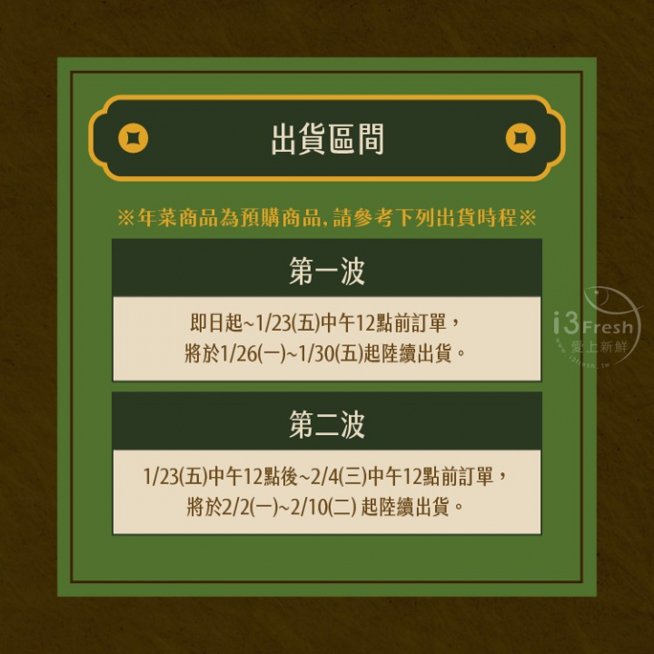 【第二波出貨區間1/23(五)中午12點後~2/4(三)中午12點前訂單,將於2/2(一)~2/10(二) 起陸續出貨。