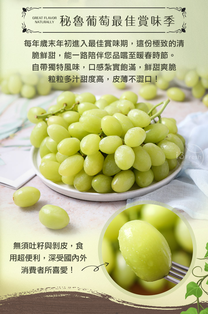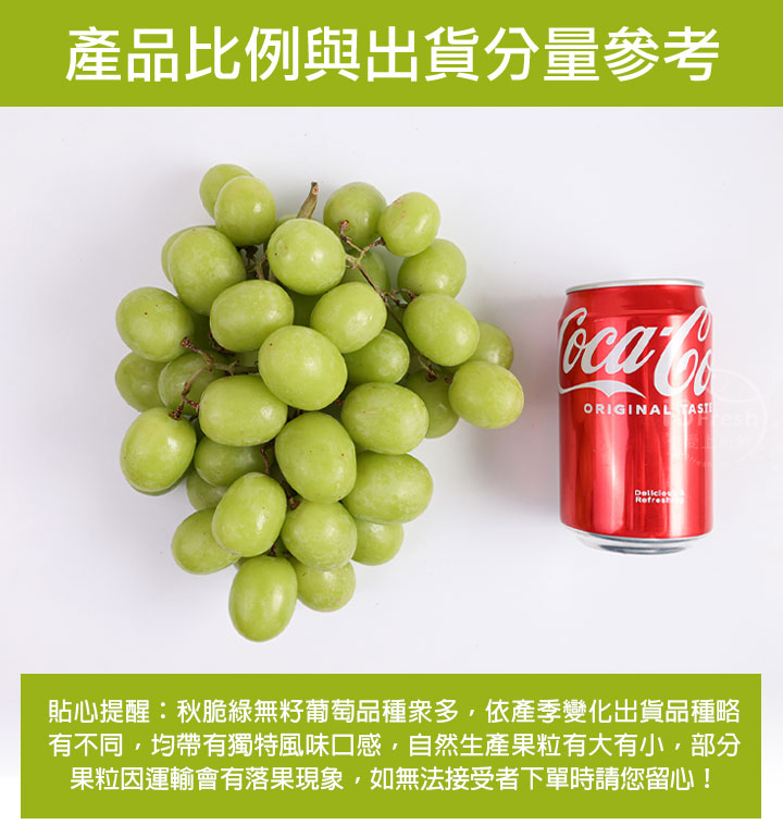 1.產品為冷藏品,暫無法與站上架其他商品(常溫品、冷凍品)共同結帳,如您需其他品項,葡萄需先完成結帳後,方可再行購買。